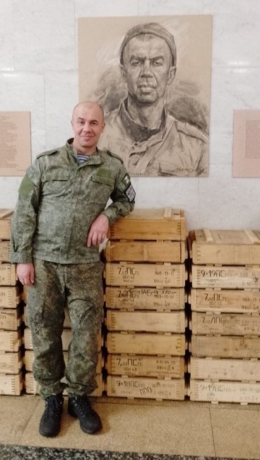 «Я уже знал войну не по кино и книгам, я уже был сам война, ее маленькая часть…Смотрел автоматы, ножи, форму и примерял, и сравнивал, и жил, жил жизнью наших дедов, тогда молодых и не очень, и знал, что они чувствовали, о чем говорили и они мне были так близки, что, казалось, мы вместе сидели в окопе, вместе шли в разведку и нас всех накрывала арта и минометы, мы чистили оружие, дрожали от холода и осеннего дождя, задыхались и потели от жары, пили чай и укрывались шинелями… Уже сейчас где-то там далеко встретились павшие деды и павшие внуки, оттуда они смотрят на нас, горя желанием вернуться и помочь и вновь пойти в бой… только бы защитить тех, кто был им близок и любим...». Ранее таким же задумчивым увидел Владимира художник Сергей Марченко. И для выставки на Поклонной горе написал портрет настоящего Солдата России!