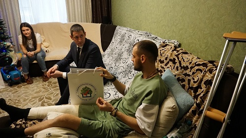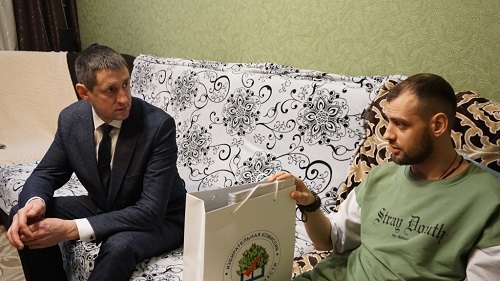 Участника СВО Александра Молчанова с приближающимся Днем защитника Отечества поздравил председатель избирательной комиссии Липецкой области Сергей Елманов и подарил подарок его сыну Даниилу.