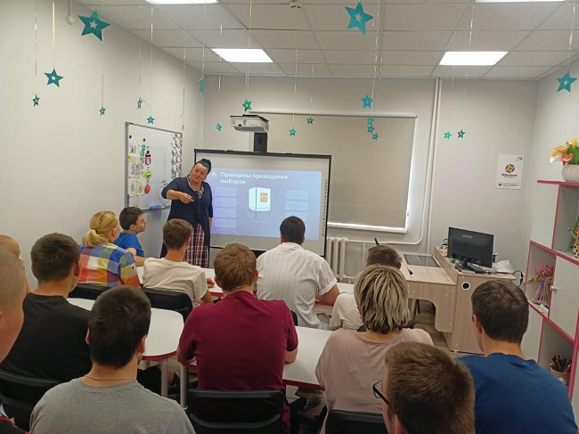 В школе-интернат села Вторые Тербуны член ТИК Тербунского района Ирина Михайловна Моргачева провела заключительную экскурсию "Молодежь. Власть. Выборы." Ирина Михайловна рассказала будущим избирателям о структуре и полномочиях органов власти регионального и муниципального уровней, о сроках полномочий и избирательных действиях при проведении выборов, об основах избирательного законодательства, принципах работы системы избирательных комиссии, организации и проведении выборов. Обратила внимание на важность участия граждан в этом механизме. В своём рассказе она подчеркнула важность доступности голосования для каждого избирателя. Будущим избирателям было интересно узнать о современных цифровых технологиях, которые применяются при голосовании на избирательном участке. Ребят интересовали вопросы об участии в выборах с использованием дистанционного электронного голосования.